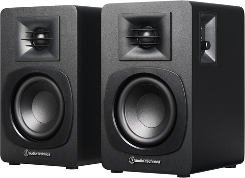Perfect for use with turntables, computers, smartphones, TVs and other devices, the AT-SP3X powered bookshelf speakers deliver rich, full-range audio via a wired or wireless connection. These compact, unobtrusive speakers elevate the listening experience in any room. They feature 3" woofers and 1.1" tweeters specially tuned by a built-in DSP to produce powerful, well-balanced sound for music, movies, and more.