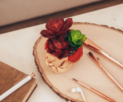 Instead of containing the soul of a serial killer, this planter pot has an artificial succulent sprouting from the top. Perfect for livening up your space with a little greenery when things get too gory.