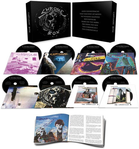 Special CD edition of the super deluxe reissue of the 1982 box set from San Francisco art rock legends Chrome! This limited edition piece contains all 8 of the classic albums produced by the core duo of Helios Creed and Damon Edge including 1977's Alien Soundtracks, 1979's Half Machine Lip Moves, 1980's Red Exposure, 1982's 3rd From The Sun and more PLUS bonus rarities including the Subterranean Modern tracks! All discs come in their own sleeve along with a stunning 88-page booklet of rare photos and detailed liner notes, all packaged in a solid black box with silver foil stamping!