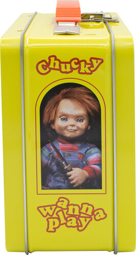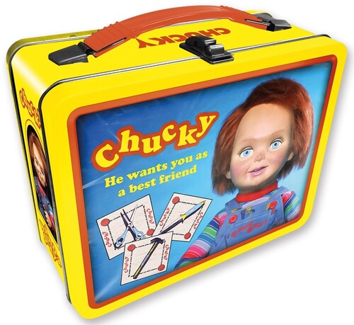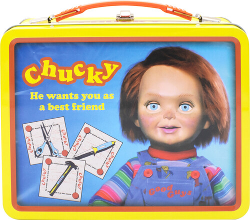 Beware Chucky is back, but this time you're safe with our Gen 2 Fun Box featuring the image of our favorite (and evil) doll. This fun box has an embossed front cover, beefy handle and sturdy design. It measures 8.6 x 6.8 x 3.9. Not designed for food, but can hold just about anything else that'll fit.