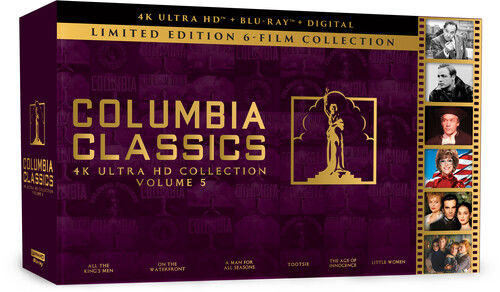 Columbia Classics 4K Ultra HD Collection Volume 5 (All The King's Men / On The Waterfront / A Man For All Seasons / Tootsie / The Age of Innocence / Little Women) (4K Ultra HD + Blu-ray + Digital) Complete your Columbia Classics Collection with Volume 5! Limited edition gift set. Featuring six movies debuting on 4K Ultra HD disc, including three Best Picture winners: ALL THE KING'S MEN, ON THE WATERFRONT, A MAN FOR ALL SEASONS, TOOTSIE, THE AGE OF INNOCENCE and LITTLE WOMEN (2019) Includes over 20 hours of new and archival special features, with commentaries, deleted scenes, making-ofs and much more! Plus an exclusive bonus disc featuring four rare Columbia Pictures films from the 1920s! - Columbia Classics Collection Volume 5 (All The King's Men / On The Waterfront / A Man For All Seasons / Tootsie / The Age of Innocence / Little Women) - UHD/Blu-ray/Digital Gift Set.