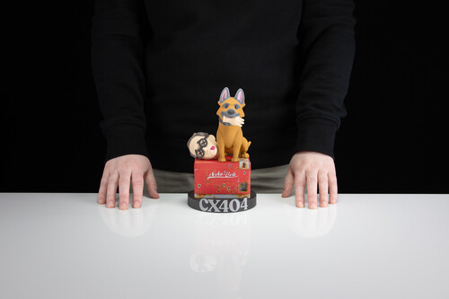 When the apocalypse hands you lemons, CX404 will lend you a hand (literally). As seen in the Amazon hit series, Fallout, this canine companion sits perched atop a weathered Nuka-Cola cooler with the head of her original owner, Wilzig. This resilient pup carries the memory of her companion wherever she roams and is happily ready to chow down on some of the finest scraps.