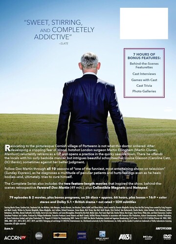 The Complete Series also includes the two feature-length movies that inspired the show, behind-the-scenes retrospective Farewell Doc Martin (47 min.), and six exclusive character postcards.