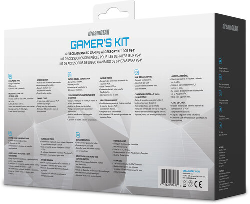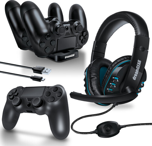 The PS4 Gamer's Kit is the perfect addition to any PS4. A dual charging dock, 10 foot charge and sync cable, a headset with crystal clear boom mic, and a protective premium silicone controller skin with textured joystick caps.