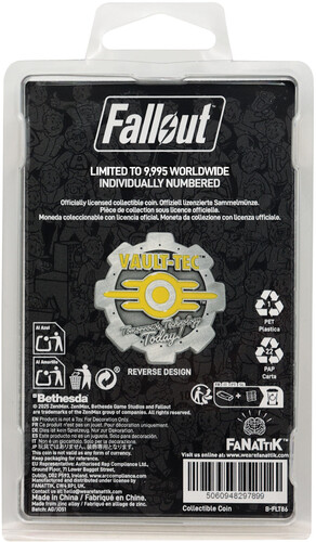 Crafted in the shape of the iconic vault blast door, this coin features bold yellow enamel detailing and an intricate double-sided design that captures the spirit of Fallout’s retro-futuristic world! As a true tribute to Fallout 4’s unforgettable opening chapter, the edition size of this coin is limited to 9995 pieces worldwide with each coin is individually numbered.