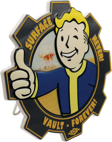 Featuring the one and only Vault Boy flashing his iconic thumbs-up, this plaque brings a dose of retro Wasteland charm to any room. Crafted from resin with a vibrant full colour print this plaque measures 200 x 198mm and is supplied with both a wall-hanging hook and built-in stand, so you can display it wherever your survival instincts lead you!