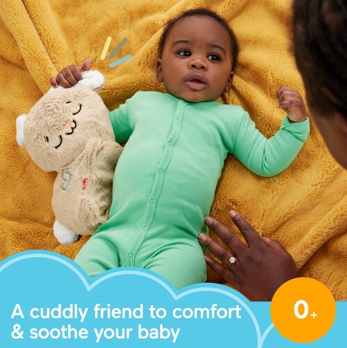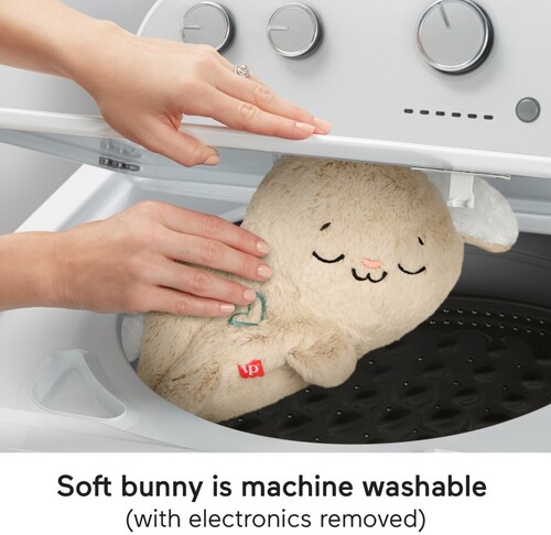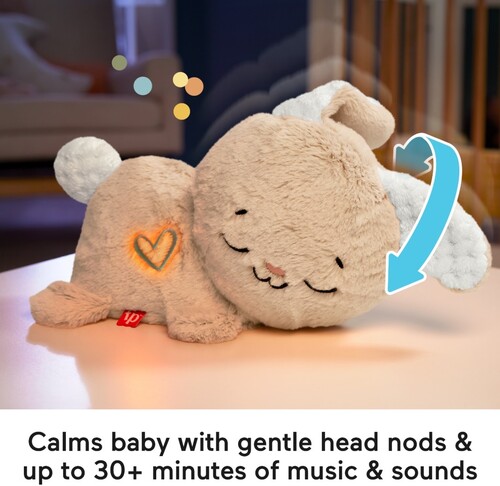 The Fisher-Price® Soothe & Settle Bunny™ plush portable sound machine is a soft and cuddly baby sensory toy that uses motion and sound to help calm and comfort your baby.
