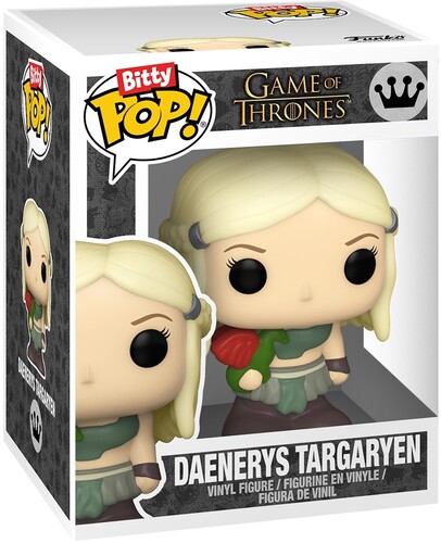 Your favorite Game of Thrones Pops! have been shrunk into Bitty Pops! Expand your collection with this assortment of Bitty Pop! figures featuring your most beloved heroes and villains as miniaturized figures! This 4-pack includes Bitty Pop! Jon Snow, Bitty Pop! Ghost, Bitty Pop! White Walker, and a mystery Bitty Pop! figure. The possible mystery Bitty Pops! are Hyper Rare (1/6) Daenerys Targaryen (with dragon), Hyper Rare (1/6) Bran Stark, Rare (1/3) Viserion, and Rare (1/3) Rhaegal. Bitty Pops! are packaged in hard acrylic cases with detachable bottom lids. Detachable bottom lids double as acrylic bases, to which the Bitty Pop! figures are adhered. Sort and arrange your Bitty Pops! with the included display case! Acrylic display cases are stackable and hold four Bitty Pop! figures each. Vinyl figures are approximately 0.9-inches tall. Four figures per single package purchase. Warning: Choking Hazard. Collectibles are small. Not for children under the age of 3 years old. Item selection is random, as each piece is in blind packaging. We cannot accept requests for specific items. You may receive duplicate figures.
