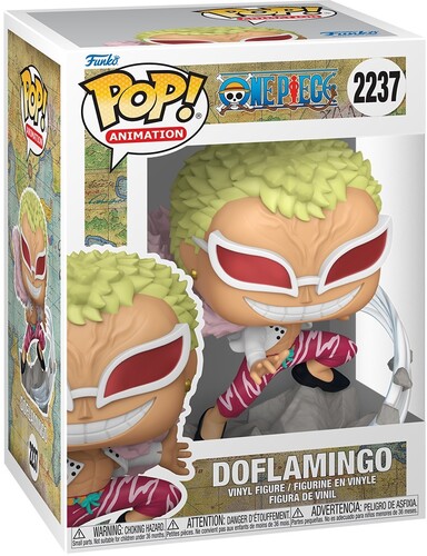 Donquixote Doflamingo is on the hunt to find Luffy and the Straw Hat Pirates and make them pay for his arrest and dethronement. Help POP! Doflamingo track down Luffy and his crew in your POP! Animation collection by welcoming this captain to your One Piece lineup. Vinyl figure is approximately 4.8 in (12.2 cm) tall.