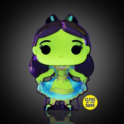Expand your Pop! style with Pop! Pins! This large Pop! Pin measures approximately 4-inches tall, just like the Pop! Vinyl Figure it's based on. Not only does the pin have the standard pin backings so you can attach it to bags or a cork board; it also has a "Funko Crown" pin stand allowing it to stand up for a dynamic display! True to it's namesake, the head is raised making it pop from the body. This Alice in Wonderland Alice Glow-in-the-Dark Large Enamel Pop! Pin features gold-colored hardware and comes packaged in a window display box.