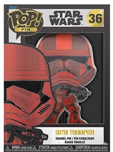 This Star Wars Sith Trooper Large Enamel Funko Pop! Pin #36 measures approximately 4 1/2-inches tall, just like the Pop! Vinyl Figure it's based on. Not only does the pin have the standard pin backings so you can attach it to bags or a cork board; it also has a "Funko Crown" pin stand allowing it to stand up for a dynamic display! True to it's namesake, the head is raised making it pop from the body. This large Pop! Pin comes packaged in a window display box. Ages 6 and up.