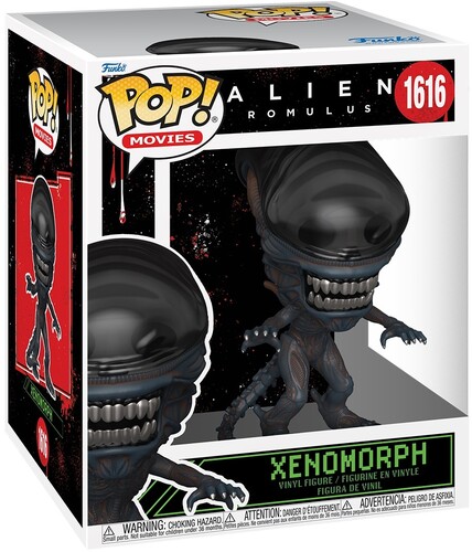 This Alien: Romulus Xenomorph Super Funko Pop! Vinyl Figure #1616 measures approximately 6-inches tall. Comes packaged in a window display box.