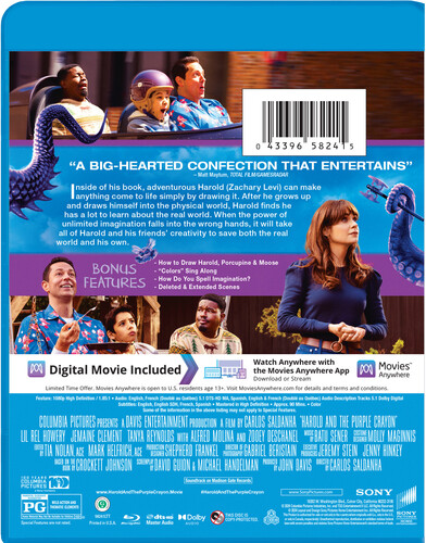 Inside of his book, adventurous Harold (Zachary Levi) can make anything come to life simply by drawing it. After he grows up and draws himself off the book's pages and into the physical world, Harold finds he has a lot to learn about the real world -and that his trusty purple crayon may set off more hilarious hijinks than he thought possible. When the power of unlimited imagination falls into the wrong hands, it will take all of Harold and his friends' creativity to save both the real world and his own. Harold and the Purple Crayon is the first film adaptation of the beloved children's classic that has captivated young readers for decades. Directed by Carlos Saldanha and produced by John Davis, the live-action hybrid family adventure/comedy stars Zachary Levi, Lil Rel Howery, Benjamin Bottani, Jemaine Clement, Tanya Reynolds with Alfred Molina and Zooey Deschanel. The film's screenplay is written by David Guion & Michael Handelman, based on the book by Crockett Johnson.