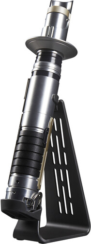- INCLUDES STAND AND BARREL PLUG: Proudly display this electronic Lightsaber on the included stand, with or without the removable blade. Use the included barrel plug when the blade is not in use