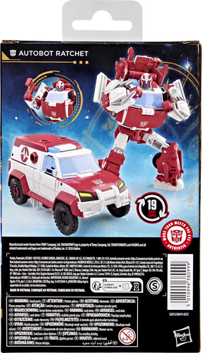 The 5.75-inch (14.5 cm) Deluxe Class figure converts from robot to vehicle mode in 19 steps. With intricate poseability and attachable tool and blaster accessories, the Autobot Ratchet action figure makes an awesome addition to any collection.