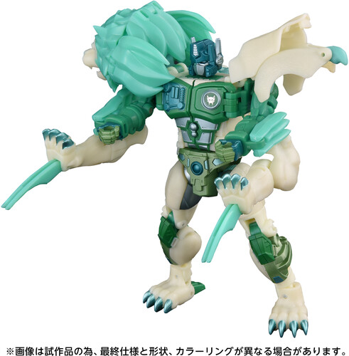 This collectible action figure for adults is inspired by Transformers: Beast Wars II and converts from robot to lion mode. It features authentic Takara Tomy design and deco, including a glow-in-the-dark body and rotating lion mane, and comes with 2 weapon accessories.