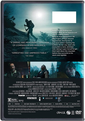 As an experienced climber (Naomi Watts) ascends New Hampshire’s Mt. Washington, a huge blizzard approaches, forcing her to turn back before reaching the summit. On her way down she encounters a lone, stranded man, taking it upon herself to get them both down the mountain before they succumb to the storm and nightfall.