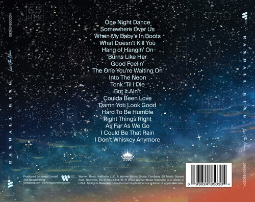 Warner Music Nashville's Randall King has never wavered in his honky-tonk allegiance, and with his sophomore major-label album, Into the Neon, he's taking honky tonk somewhere new-a place where "steel guitar and smoke" meet a modern buzz. Schooled on icons like Keith Whitley, George Strait, Alan Jackson and John Anderson, yet inspired by modern masters like Dierks Bentley and Gary Allan, King's Into the Neon draws on his influences, allowing punchy sounds to exist side-by-side with timeless swagger, further blurring the line between yesteryear and today. Co-produced by King alongside Jared Conrad, and featuring 18 tracks including "When My Baby's In Boots," "Hang Of Hangin' On" and "I Could Be That Rain," doubled electric guitars and heavy steel drive irresistible melodies forward, while an all-organic cast of add-ons like banjo, bouzouki and cello add depth to tender two-steppers and steel-toed boot stompers alike. "It's that smoky, edgy side of me that hasn't gotten to be shown off yet," he says. "That's what I've been looking for, and I'm incredibly proud of the whole thing.