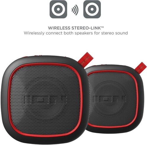 Magnet Rocker™️ 2-Pack speakers stream music from your preferred Bluetooth®️-enabled device. They have a Wireless Stereo-Link feature so you can wirelessly connect both speakers for real stereo sound. Their rugged design is IPX5 water-resistant and is safe to leave in the rain or near the pool or beach for uncompromising use outdoors. The Magnet Rocker™️ 2-Pack speakers both have a built-in 12-hour rechargeable battery for long-lasting, uninterrupted audio. This speaker package includes 2 carabiners that wi
