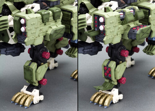 The two-toned green color armor of this Zoid was recreated with multicolor plastic so just assembling the model kit will result in a product close to the character model.