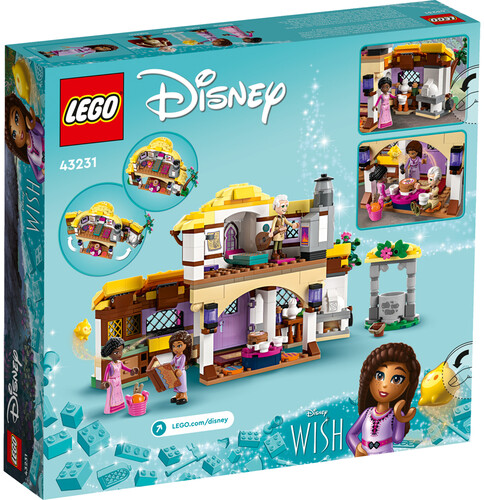 Captivate kids aged 7 and up with Asha’s home from Walt Disney Animation Studios’ film, Wish, in this LEGO® ǀ Disney Asha’s Cottage (43231) construction playset. Inside is a 2-level building with hinged, opening sides, a table with a smiley-face cake, cabinets with a notebook, spoon and fork, and a bedroom upstairs with a bed and fireplace. There’s also a wishing well and loads of other play accessories. Add this LEGO ǀ Disney buildable set to others in the series (43223 and 43224, sold separately) to expand the play. As they build, kids get easy and intuitive assistance with the LEGO Builder app. They can zoom in and rotate models in 3D, save sets and track their progress. Unique cottage and charactersThe set includes 4 characters – Asha, her mom Sakina, her grandpa Sabino and Star – to encourage role play as kids explore the cottage. Fulfill a child’s passion for magic and wishes with a buildable model that’s easy to take out for playdates and makes a fun gift.
