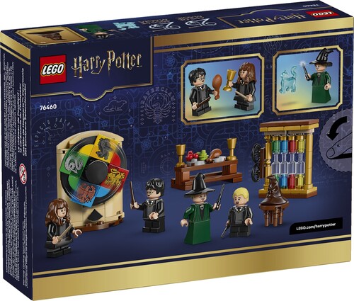 Join Professor McGonagall™, Harry Potter™, Hermione Granger™ and Draco Malfoy™ for a magical Sorting Hat™ ceremony. Place the Sorting Hat on each student’s head and spin the wheel to discover which Hogwarts™ house they will join. Will it be Slytherin™, Ravenclaw™, Hufflepuff™ or Gryffindor™? And look out for the LEGO® Harry Potter 25th anniversary collectible: McGonagall’s Cat Patronus™!