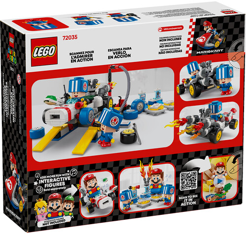 - 2 Nintendo® collectible Blue Toad (Pit Crew) toy figures – This LEGO® brick-built Mario Kart™ set features 2 Blue Toad (Pit Crew) figures in blue pit crew uniform, plus assorted accessories