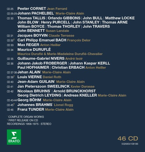 Initiated by the visionary musicologist and organist Olivier Alain - brother of Marie-Claire Alain - this monumental "Encyclopédie de l'orgue" series presents an unparalleled panorama of organ repertoire. It offers a detailed exploration across diverse regions, historical periods (from the 16th century to the contemporary) and stylistic approaches. Recorded between 1958 and 1975, this comprehensive collection features several first-time releases on CD, providing a vibrant testament to the art and spirit of the organ. Major composers are represented by their complete works, while lesser-known figures are highlighted through a carefully curated selection of significant pieces. Each recording was meticulously made on an instrument truly representative of it's repertoire - one whose construction and tonal character authentically correspond to the original aesthetic of the work. The interpretations consistently pursue musical, historical, and stylistic authenticity, entrusted to some of the most distinguished organists of their era.