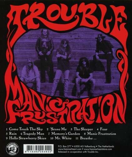 Digitally remastered edition. At their peak, Trouble were the perfect combination of Black Sabbath meets The Beatles, and their 1992 album Manic Frustration was their collaborative pinnacle. Perhaps a case of divine intervention from the feedback gods; the Doom pioneers jumped from their record label, Metal Blade to Rick Rubin's American Recordings shortly after Slayer had. While Trouble never reached the commercial heights of the Thrash kings - they were, in their own way, just as important. Manic Frustration immediately pulls you into a time warp of 70's metal bliss, with it's razor-sharp guitar tones and muscular, crisp production, courtesy of Rick Rubin (System Of A Down, Johnny Cash), himself. The way the players bounce off of each other is a rare example of lightning in a bottle, and Rubin is just there to document it all, in his typically stripped back fashion.