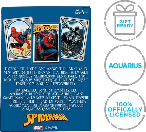 Protect the people and annoy the bad guys in New York with Spider-Man ! Featuring 52 images of the friendly neighborhood web slinger, this deck of cards is sure to prove that with great power, comes great responsibility.