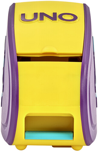 Double-sided cards have a Mild Side which plays like classic UNO® and a Wild Side with special cards and tougher penalties. When a player must draw a card, they press a button on the card launcher where they never know how many cards will shoot out. And if the game is on the Wild Side, tons more cards are launched than on the Mild Side! And when down to a last card, don't forget to yell 'UNO!'