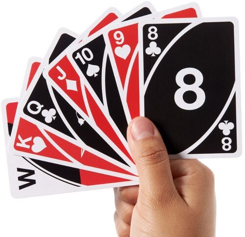 Wild Twists™ Playing Cards by UNO® brand is a standard deck of 52 playing cards with the addition of eight special Wild Cards for optional crazy twists!