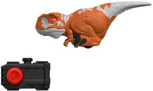 - About 6 in long, this Uncaged Click Tracker Atrociraptor red dinosaur comes with a clicker control that makes it spin, move and make sounds. Watch out, it's still wild and unpredictable!