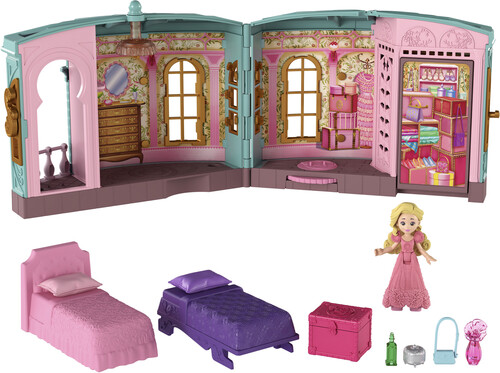 The playset comes with a 2.75-inch Glinda doll, 3 play spaces and nine storytelling accessories to recreate iconic movie moments and beyond. Glinda can swing from the chandelier or spin on the platform to reveal her roommate, Elphaba’s, hidden bed space!