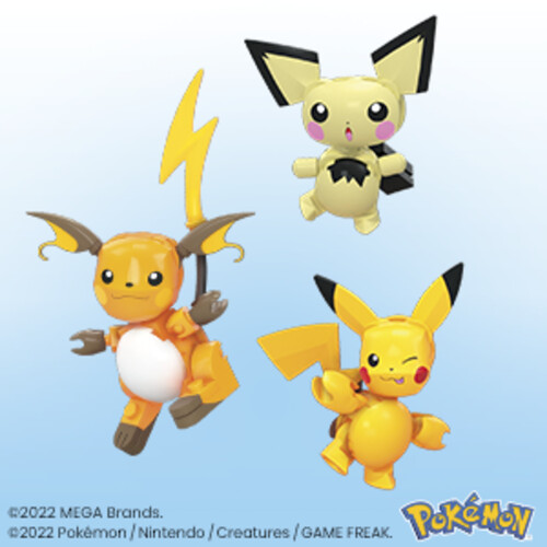 - Buildable and poseable Pokémon characters Pichu, Pikachu, and Raichu