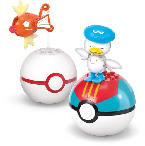 Build your very own Water-type team including familiar faces Wooper, Magicarp, Quaxly, and Squirtle. Pose & display them with the 4 pronged Poké Balls.