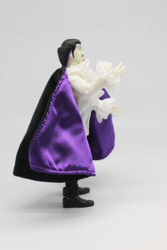 Hailing from Transylvania, Count Dracula is a vampire, 500 years old, with supernatural powers and weaknesses. He can bite people and turn them into vampires. This figure comes with detailed blood droplets on his fangs.