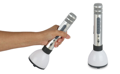 These truly portable 2 in 1 Bluetooth Microphones with Speakers pair so you and a friend can sing the night away! Lights sync as you sing, and the Echo controls give your voice a fun effect!