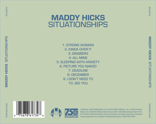 Dating in your 20's is confusing, scary, romantic, exciting, & heartbreaking. Over the 10 tracks on Situationships, Maddy Hicks weaves the story of her situationships, a generational term for anything romantically unclear, into one cohesive sonic journey through love, loss & finding something new.