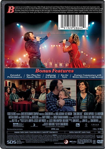 Highlighted by magnetic performances from Hugh Jackman and Kate Hudson, this moving and offbeat music biodrama-based on a 2008 documentary-tells the true story of Lightning & Thunder, a Neil Diamond tribute band formed by Mike and Claire Sardina. The somewhat unexpected success they achieved in the 1990s is surpassed only by Mike and Claire's amazing love story, which saw them stick together though good times and bad. With Michael Imperioli, Jim Belushi, Ella Anderson, King Princess. 133 min. Widescreen; Soundtrack: English; audio commentary; featurettes; extended performances.