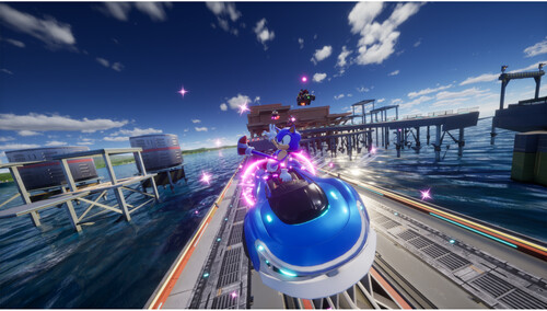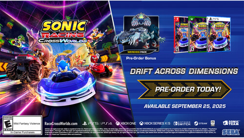 Race across land, sea, air and space in Sonic Racing: CrossWorlds! Warp through Travel Rings into new dimensions where something new awaits around every twist and turn. Speed to victory solo or as a team in a variety of offline and online modes and compete against players from around the world. Build the ultimate machine to match your racing style, unlock gadgets to gain the upper hand, and unleash power-up items for the win!