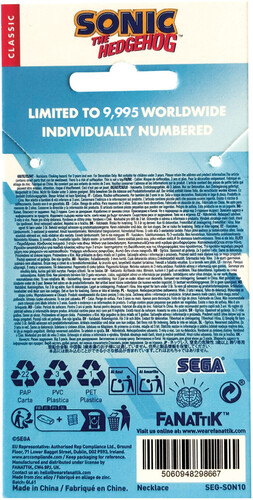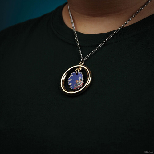 Rings are synonymous with Sonic the Hedgehog, with him collecting them in almost every game in which he has appeared. This limited edition necklace represents that connection by featuring a pixelated version of the blue speedster inside a ring finished with gold plating. Individually numbered to the reverse of Sonic, the necklace is limited to 5,000 worldwide.