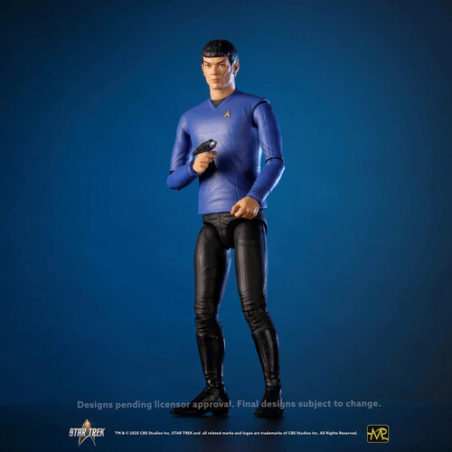This action figure shows Lt. Spock as portrayed by Ethan Peck in Strange New Worlds.