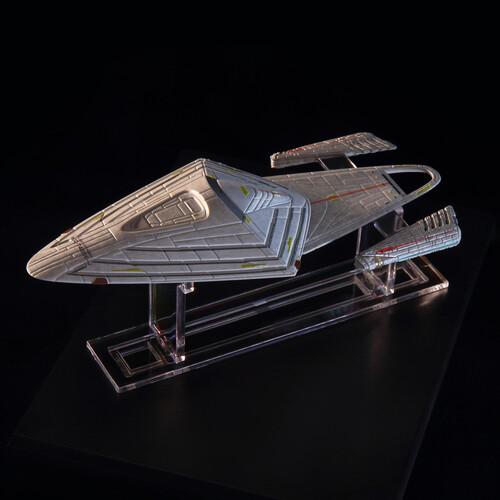 The producers wanted it to be a tribute to Janeway's ship and to show the links between different eras of Star Trek. The model is part of Master Replicas new range of 4 to 5-inch long die-cast models, and is accompanied by a 48-page book, which features a brand-new, in-depth interview with Discovery showrunner Michelle Paradise.