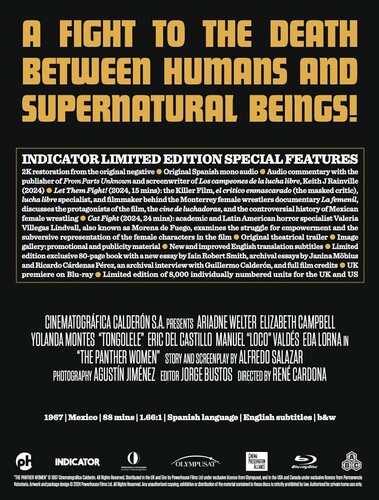 Directed by René Cardona (Night of the Bloody Apes), scripted by Alfredo Salazar (The Bat Woman), and produced by Guillermo Calderón (Santo vs. the Riders of Terror), The Panther Women is an action-packed and influential classic of the cine de luchadoras.