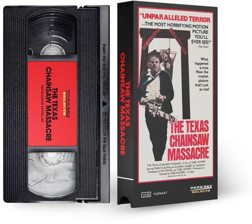 Dark Sky Selects proudly presents The Texas Chain Saw Massacre 50th Anniversary Chainsaw Edition. This set includes the 4K UHD edition of the feature film, Blu-ray edition of the feature film, Blu-ray bonus disc, and an exclusive VHS release featuring original VHS release artwork. All are housed in a replica of the iconic chain saw from the film, which comes in a special 50th Anniversary numbered box. Opening the chainsaw triggers the sound of Leatherface wielding the chainsaw in the film. This limited edition also features a newly designed 50th Anniversary O-card and brand-new bonus content, including The Merchandise of The Texas Chain Saw Massacre and The Restoration of The Texas Chain Saw Massacre.