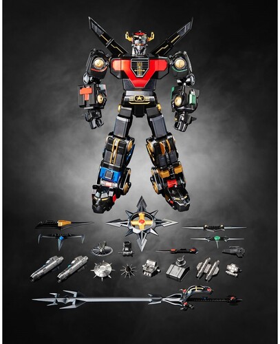 Voltron features a remarkable die-cast metal frame and an impressive metallic black and gold deco finish. Voltron is composed of five Lion mecha that can be displayed on their own or combined to form Voltron! A unique set of weapons is included for each Lion, as well as weapons for Voltron mode.