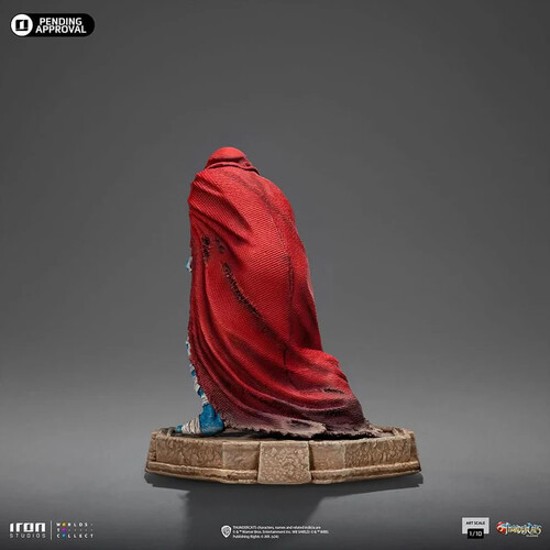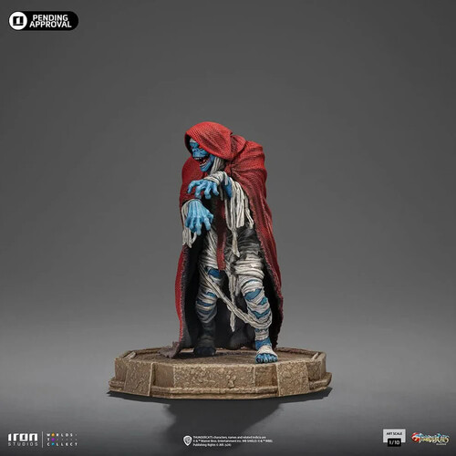 On a planet called Third Earth, a grotesque ancient undead mummified sorcerer with bluish-gray skin and red eyes, slowly moves with his body partially enfolded in bandages and covered in a crimson cloak! With atrophied hands and a terrifyingly insane smile in his hideous face, his evil mind plans the next steps of conquest, either by manipulating and using his animalistic minions Mutants from the planet Plun-Darr, declared enemies of the ThunderCats, or in his more powerful and pharaonic form known as the “Ever-Living”. Iron Studios present the statue “Mumm-Ra Decayed Form - ThunderCats - Art Scale 1/10", with the biggest archenemy of the feline from Thundera in his decrepit and decayed form, over an octagonal flat base with rocky aspects, reminiscent of the interior floors of his Black Pyramid.