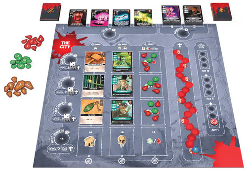 Building your new Order will involve managing a continuously evolving hand of vampire cards at your command, sending them throughout the city to visit Locations, perform arcane Rituals, bewitch Victims, and recruit new vampires, all over the course of 9 rounds (Days). All of these activities take the form of cards activated by your Order Tokens on the board, allowing you to amass critical resources, perform useful actions, and earn Victory Points.