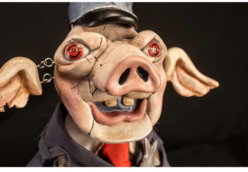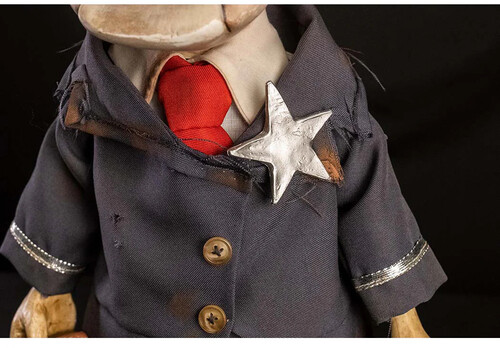 The head, hands, and feet are made of vinyl for ultimate durability and accuracy. The head has sculpted hat and ears, attached via interlocked eyelets allowing them to move freely. The body is made in flexible polyurethane foam with an ultra-strong wireframe. The puppet comes fully clothed in distressed uniform with a shirt, tie, pants, and a jacket featuring a vinyl star badge. Includes a screen-accurate small vinyl pistol.